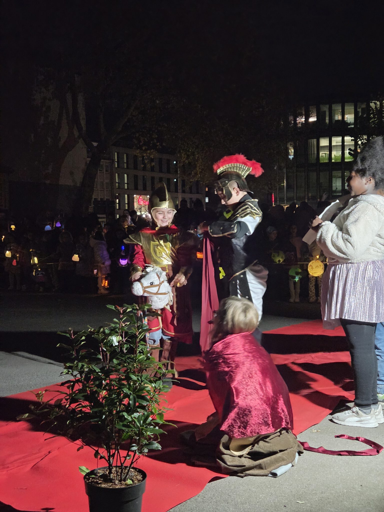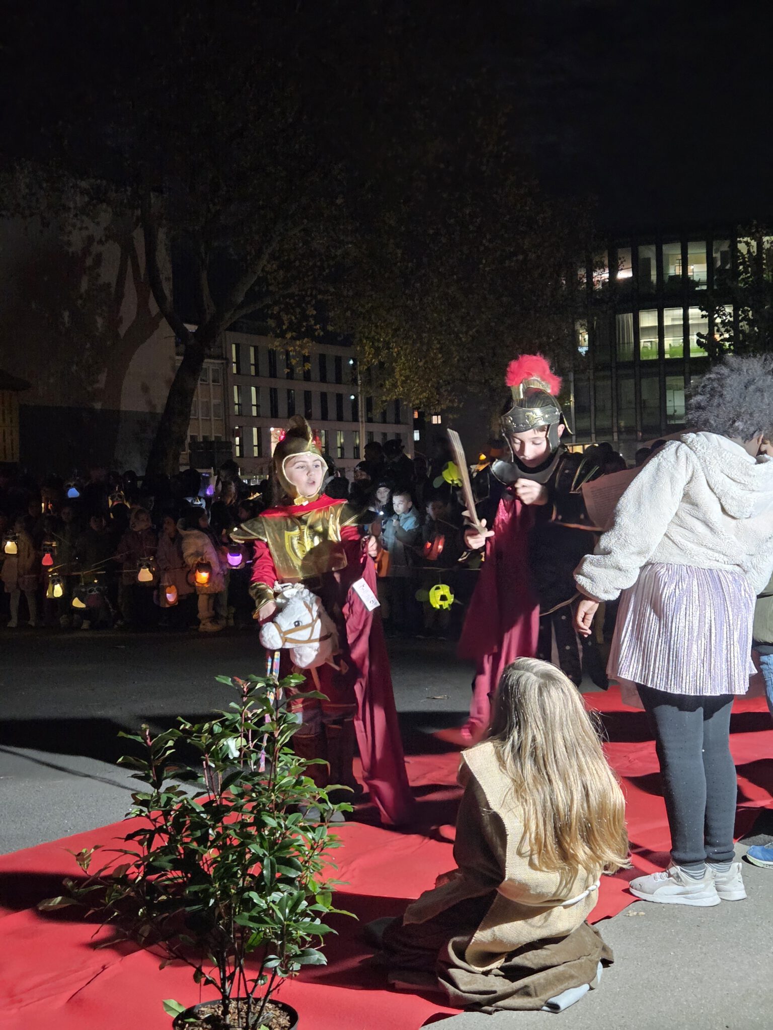 Am 6. November 2025 feierten alle Klassen gemeinsam unser traditionelles St. Martinsfest. Nach einem stimmungsvollen Theaterstück, das die Geschichte des heiligen Martin lebendig werden ließ, konnten Groß und Klein über den festlich geschmückten Schulhof schlendern.