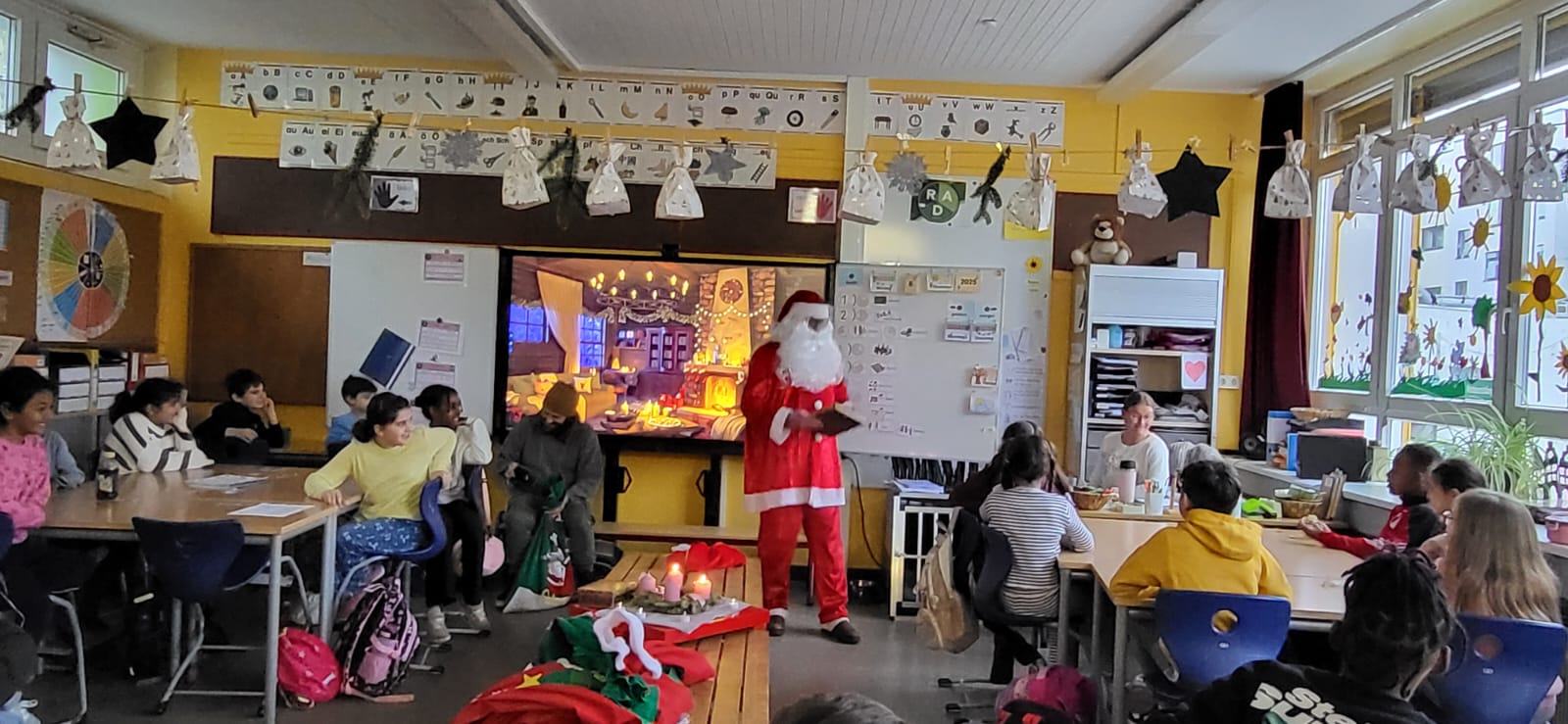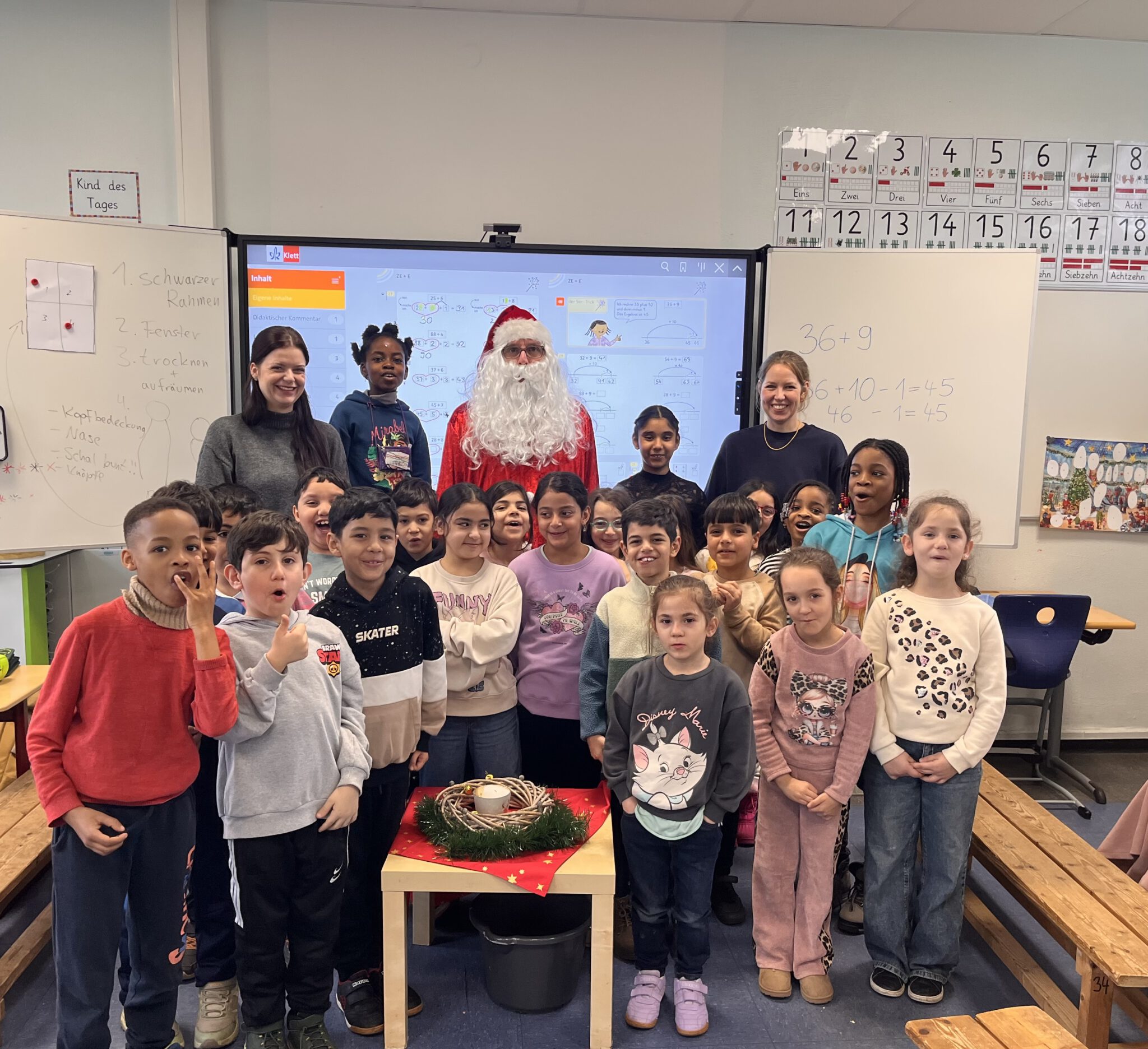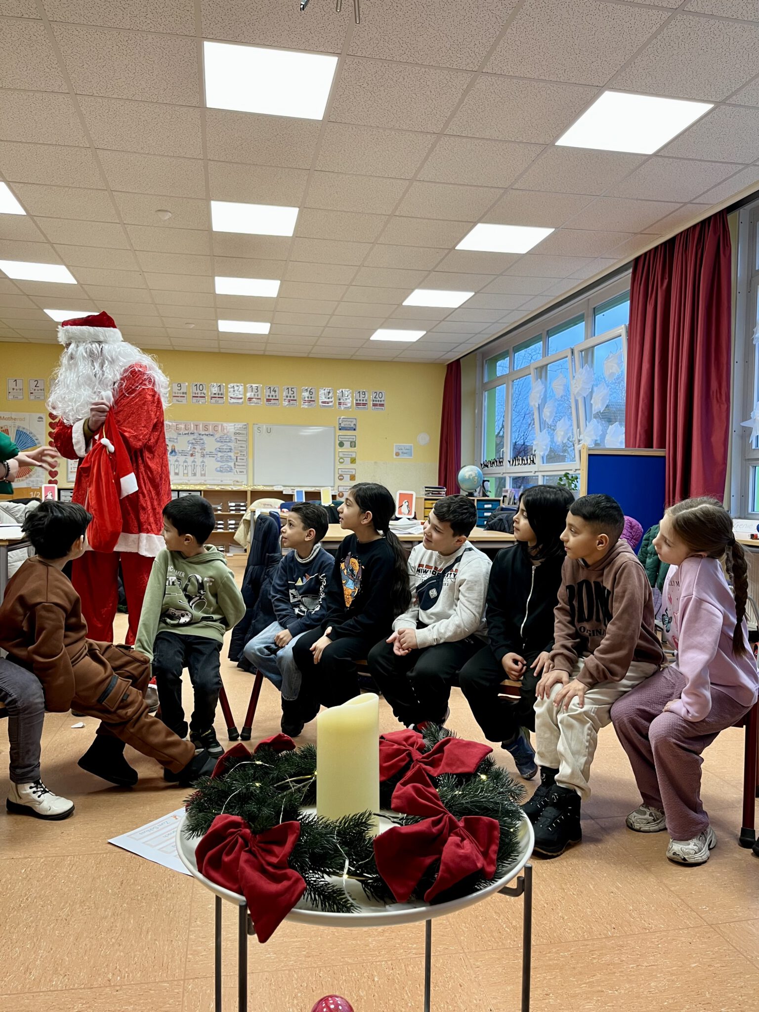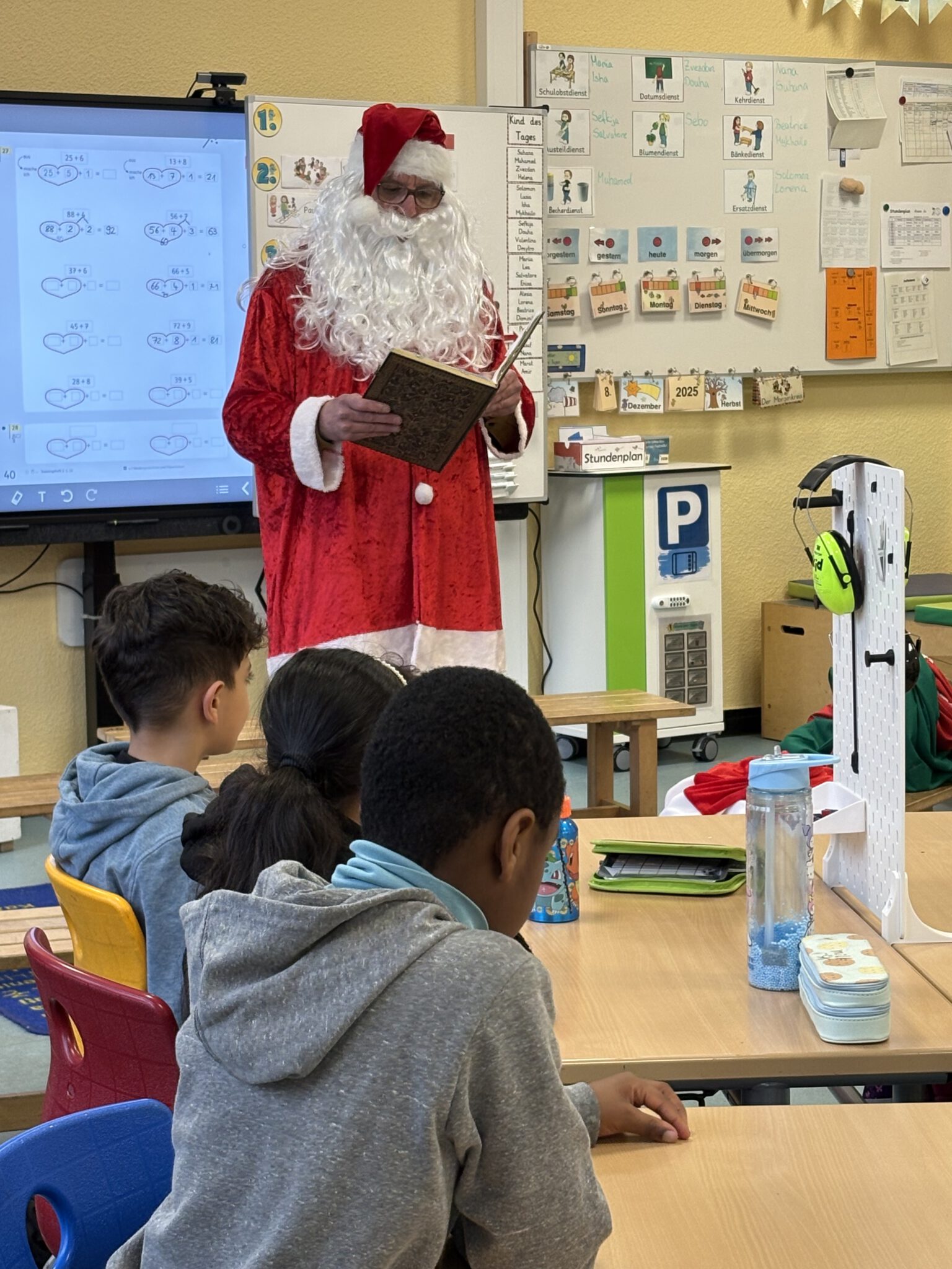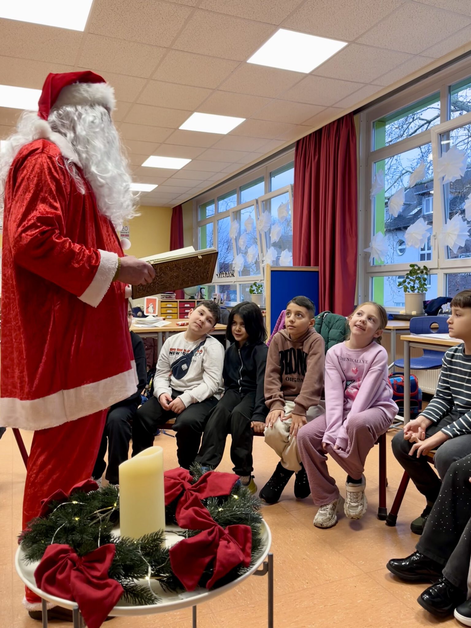 Am 8.12.2025 besuchte der Nikolaus alle Kinder der Brüder-Grimm-Schule. Mit viel Lob im Gepäck nahm er sich Zeit für jede Klasse. Natürlich hatte er auch eine kleine Überraschung dabei: Jedes Kind erhielt einen Schokonikolaus.