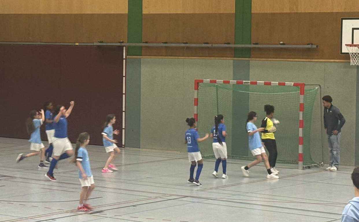 Im Viertelfinale trafen wir auf die Hirschkampschule. Nach einem frühen Rückstand bewiesen unsere Mädchen großen Kampfgeist. Mit Entschlossenheit, Teamzusammenhalt und sehenswerten Spielzügen drehten sie die Partie und gewannen am Ende verdient mit 2:1.