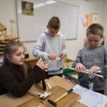 Die Kinder der Klasse 3b haben im KiTec-Unterricht gewerkelt. Zunächst wurden verschiedene Werkzeuge, wie Schraubstock, Säge, Feile, Hammer, Handbohrer und Schraubenzieher kennen gelernt und ausprobiert. Danach haben sich die Kinder in Gruppen überlegt, wie sie eine Stabpuppe bauen können. Diese Planung wurde aufgezeichnet und aufgeschrieben. Anschließend haben die Kinder in ihren Gruppen zu den Werkzeugen gegriffen und die Stabpuppen selbstständig gebaut.