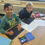 Im fächerübergreifenden Unterricht haben sich alle Kinder der Klasse 1a im Rahmen des Sachunterrichtes mit den eigenen Gefühlen auseinandergesetzt. Im Deutschunterricht haben die Kinder gemeinsam mit dem Klassenlehrer das Buch „Heute bin ich“ von Mies van Hout erlesen. Im Kunstunterricht haben anschließend alle Kinder ihren eigenen Gefühlsfisch erst skizziert und dann farbig auf schwarzem Tonpapier gestaltet.