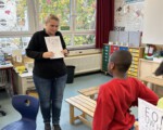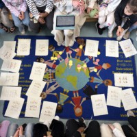 Jede Woche kommt in Klasse 1 der kleine Drache Lobo vom Planeten Globo. Gemeinsam wird gereimt oder Silben geklatscht. Zuletzt hat Lobo mit den Kindern einen Blick in eine Schatzkiste geworfen. Darin lauter Dinge zum Anlaut „A“. Zusammen mit Lobo lernen die Erstklässler nun zu den Buchstaben.