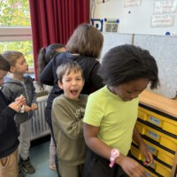 Beim Geschmackstest kosteten die Kinder verschiedene geheimnisvolle Flüssigkeiten – mal süß, mal sauer, mal salzig. Ganz ohne verbundene Augen mussten sie herausfinden, welcher Geschmack sich dahinter verbirgt. Beim Sehtest waren Aufmerksamkeit und genaues Hinsehen gefragt, um kleine Unterschiede und Details zu entdecken.