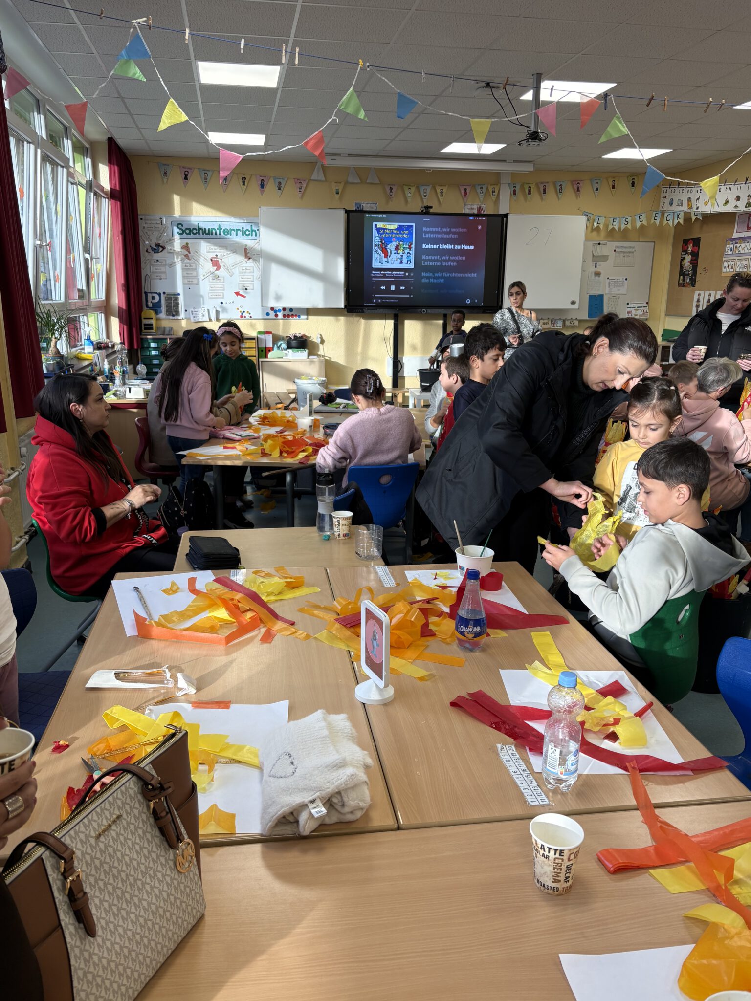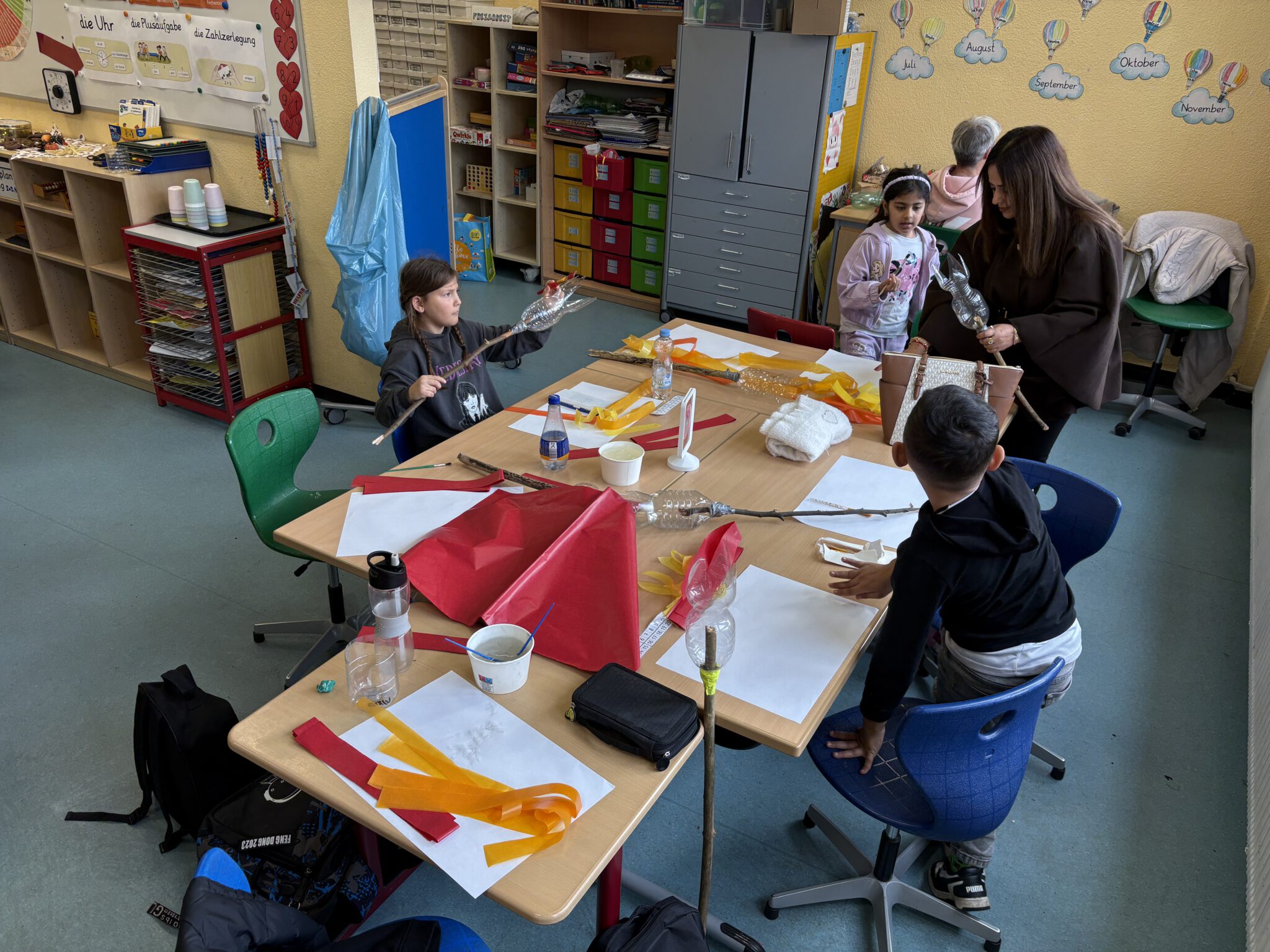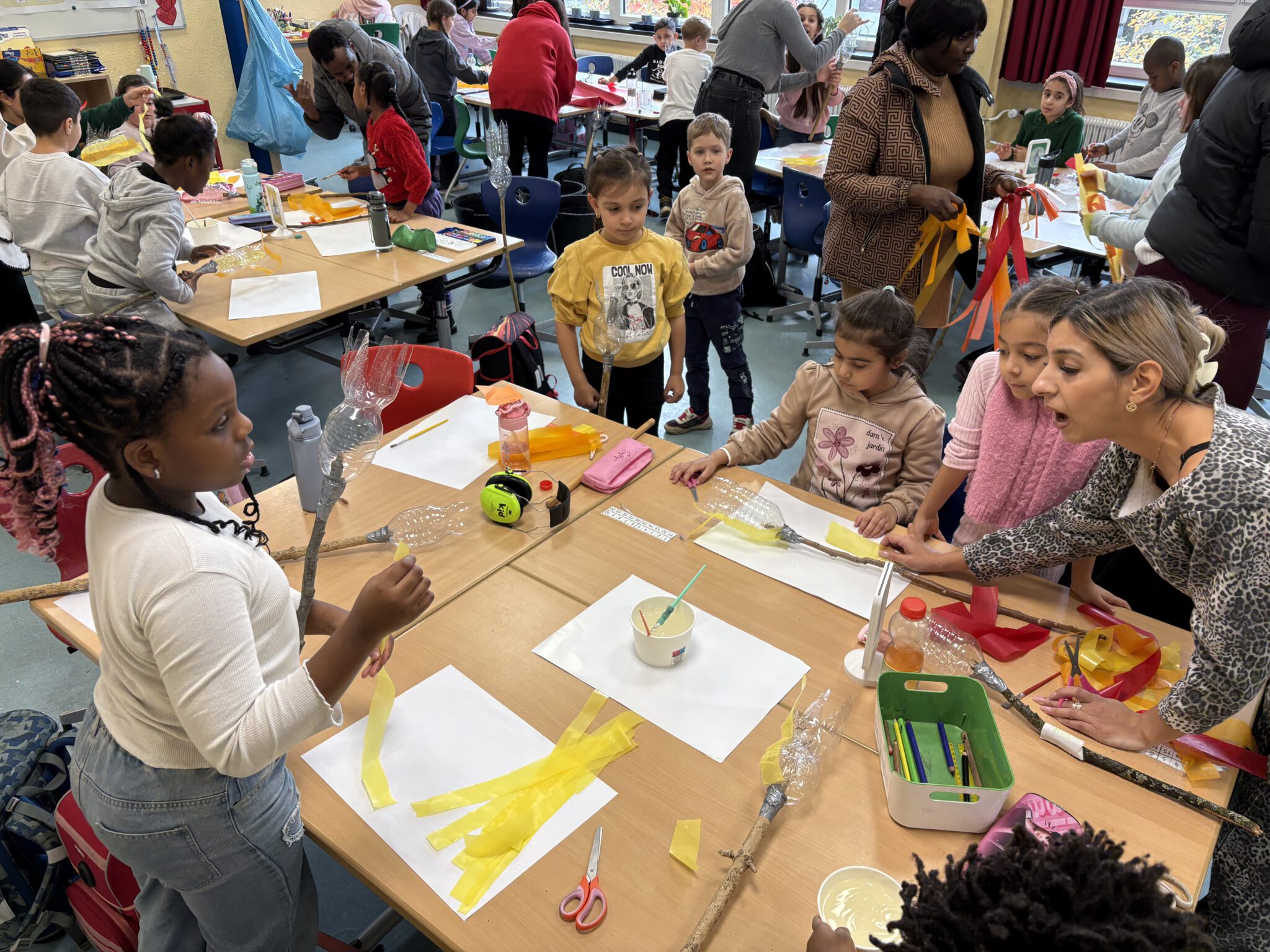 Am 30.10.2025 fand unser gemeinsamer Bastelnachmittag statt. Viele Eltern kamen in die Schule, um zusammen mit den Kindern aus leeren PET-Flaschen kreative Fackeln für den Martinszug zu gestalten. Mit Fantasie, Teamarbeit und viel Freude entstanden leuchtende Upcycling-Kunstwerke. Ein herzliches Dankeschön an alle Eltern für ihre tatkräftige Unterstützung und die schöne gemeinsame Zeit!