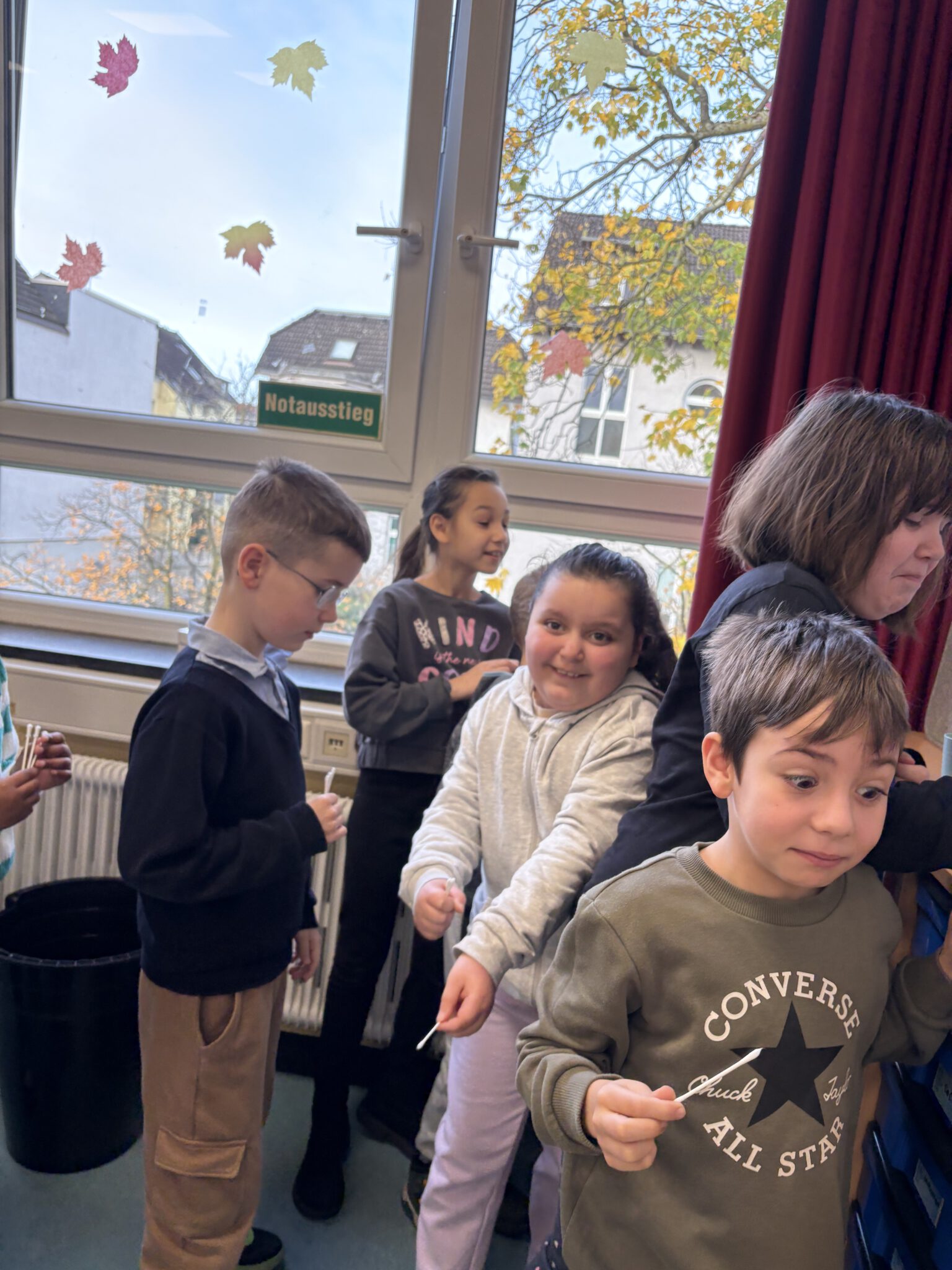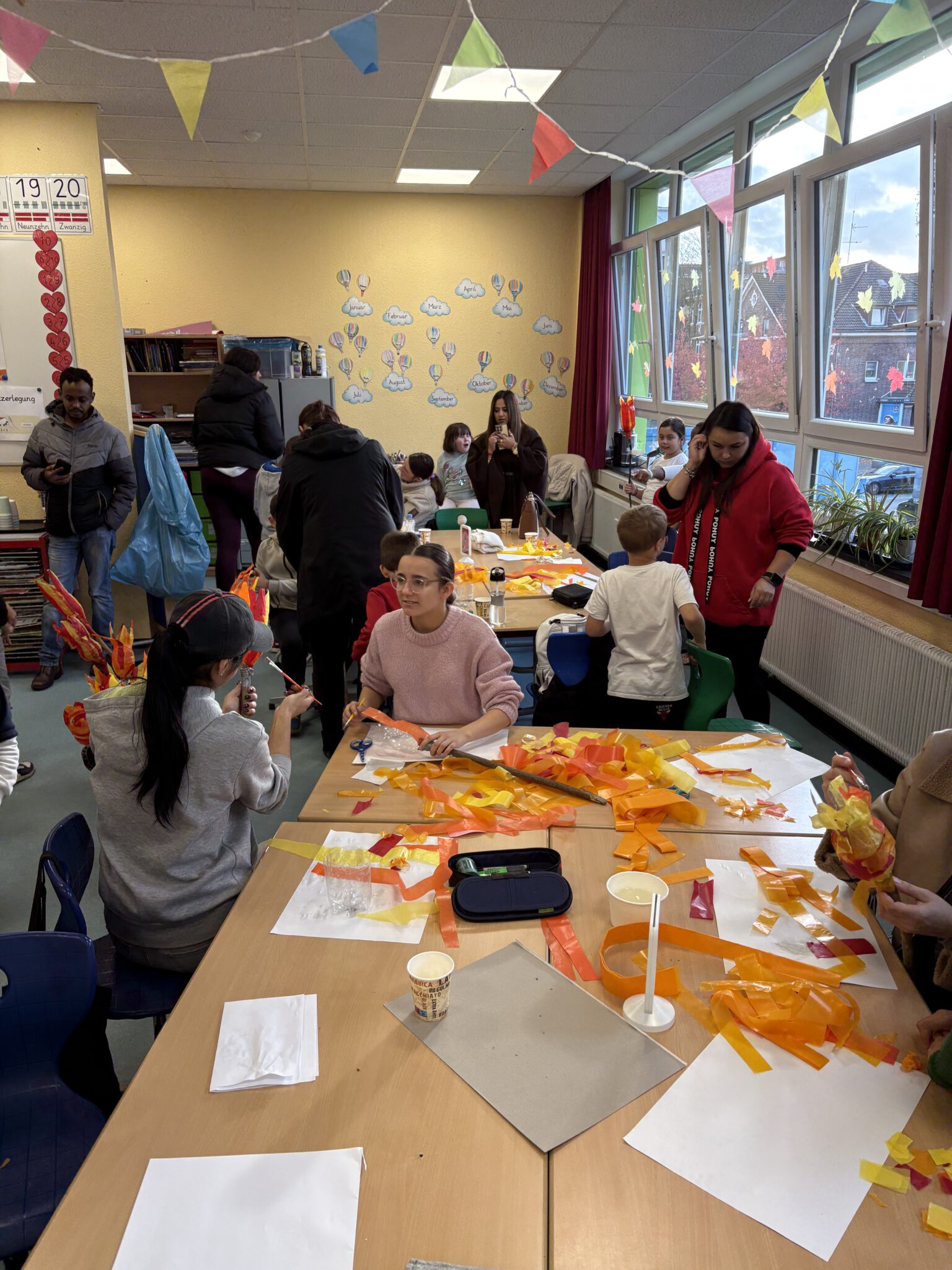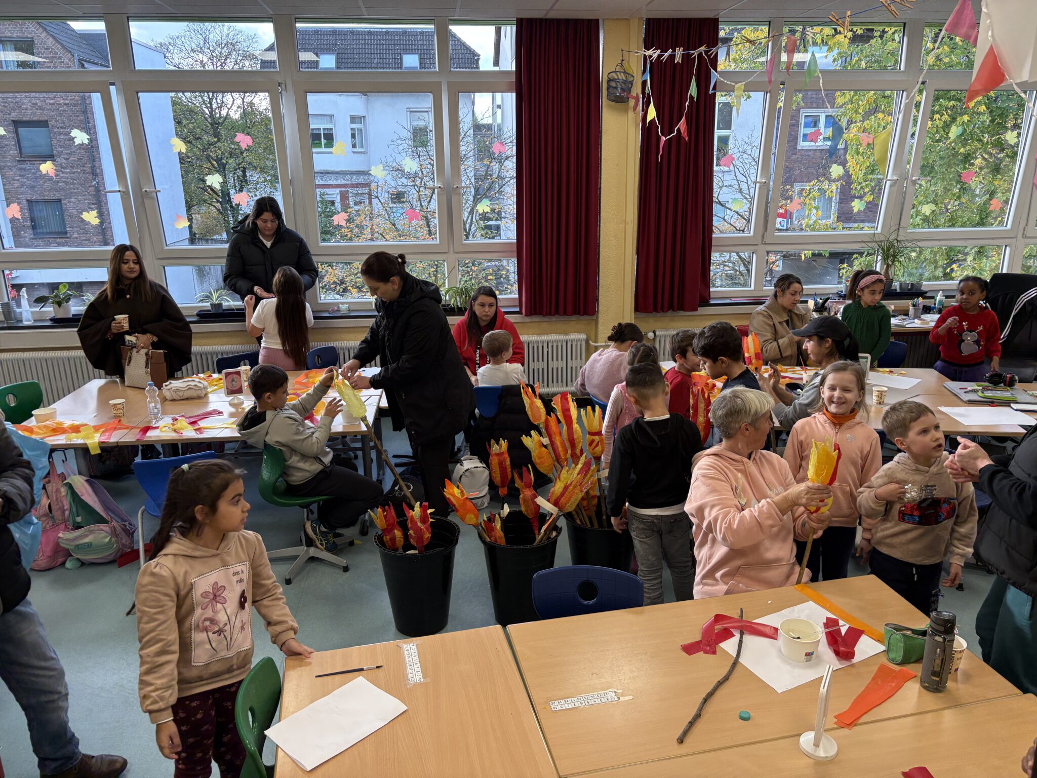 Am 30.10.2025 fand unser gemeinsamer Bastelnachmittag statt. Viele Eltern kamen in die Schule, um zusammen mit den Kindern aus leeren PET-Flaschen kreative Fackeln für den Martinszug zu gestalten. Mit Fantasie, Teamarbeit und viel Freude entstanden leuchtende Upcycling-Kunstwerke. Ein herzliches Dankeschön an alle Eltern für ihre tatkräftige Unterstützung und die schöne gemeinsame Zeit!