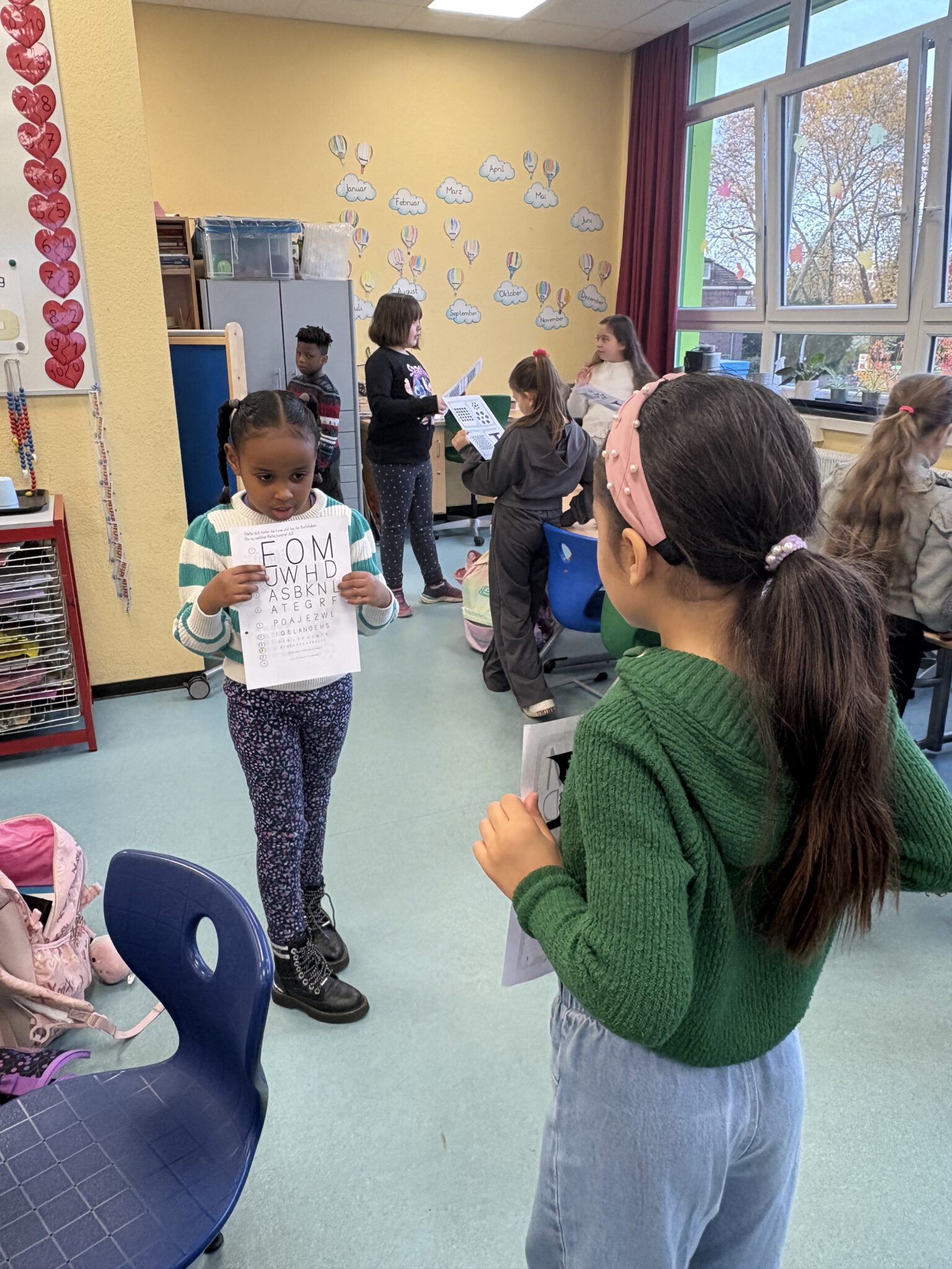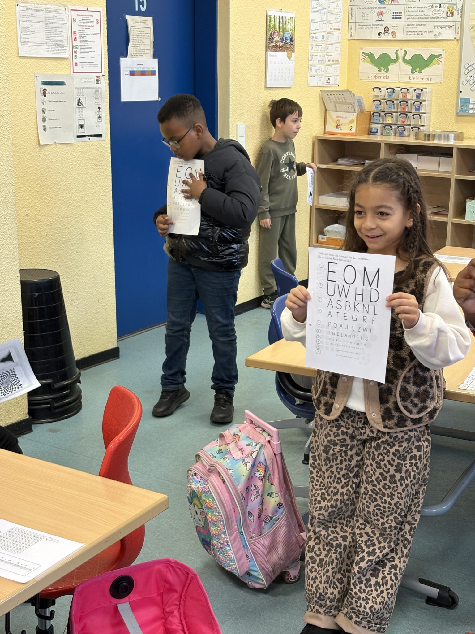Beim Geschmackstest kosteten die Kinder verschiedene geheimnisvolle Flüssigkeiten – mal süß, mal sauer, mal salzig. Ganz ohne verbundene Augen mussten sie herausfinden, welcher Geschmack sich dahinter verbirgt. Beim Sehtest waren Aufmerksamkeit und genaues Hinsehen gefragt, um kleine Unterschiede und Details zu entdecken.