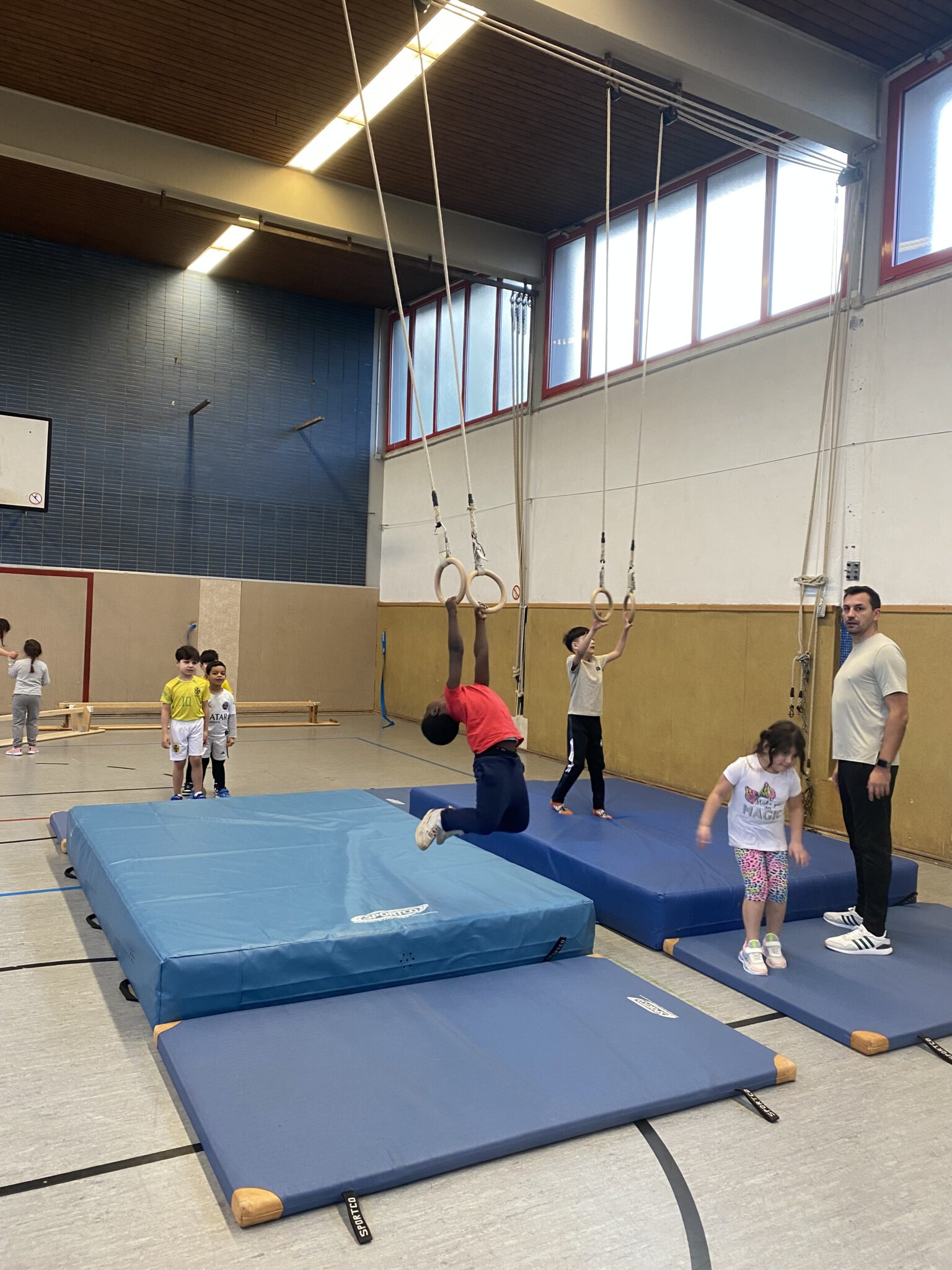 In der Klasse 1b stand im Sportunterricht eine vielfältige Bewegungslandschaft auf dem Programm. Die Kinder konnten an verschiedenen Stationen ihre motorischen Fähigkeiten spielerisch erproben. Mit viel Freude und Neugier entdeckten die Kinder neue Bewegungsmöglichkeiten und stärkten gleichzeitig ihre Koordination, Kraft und Ausdauer.